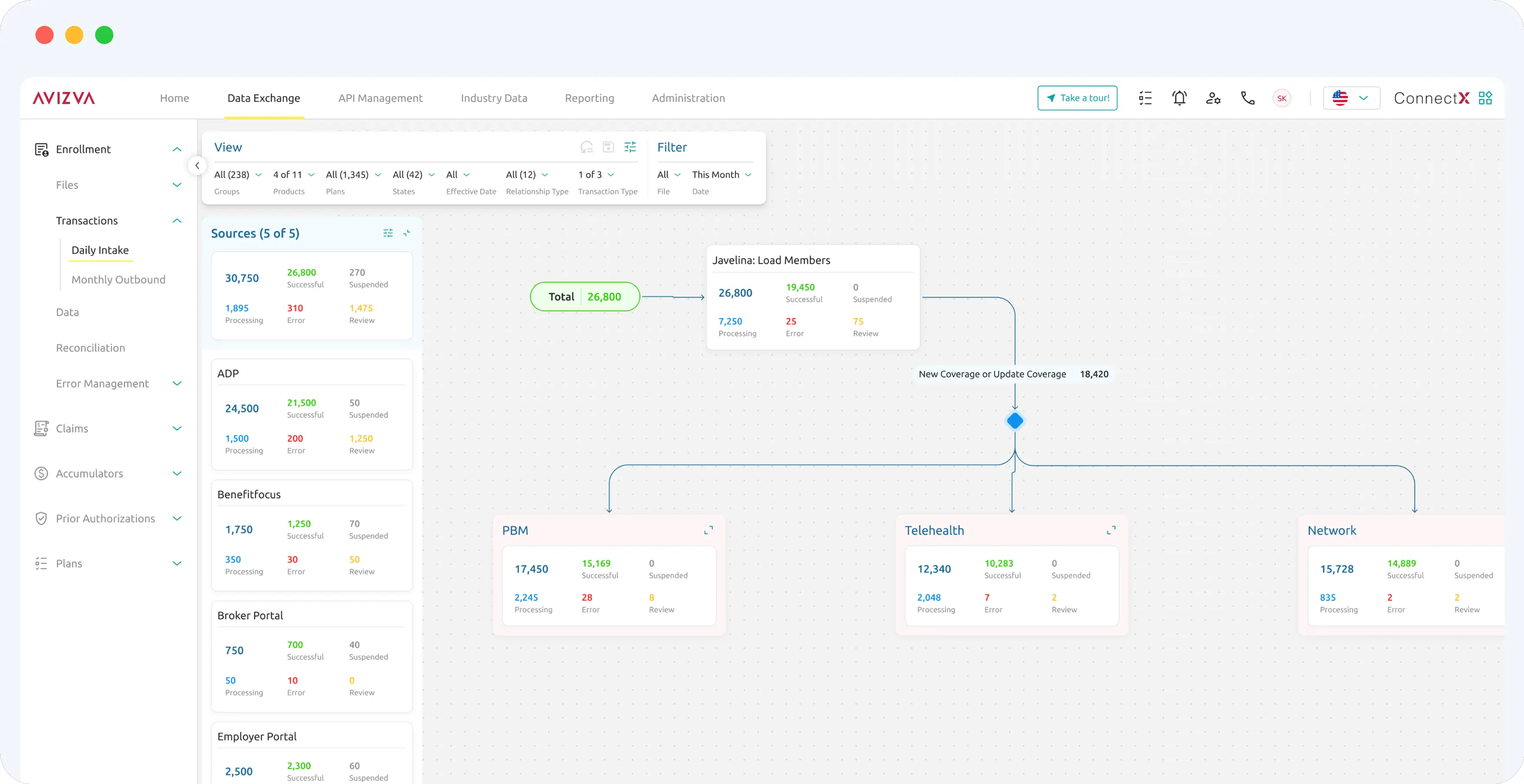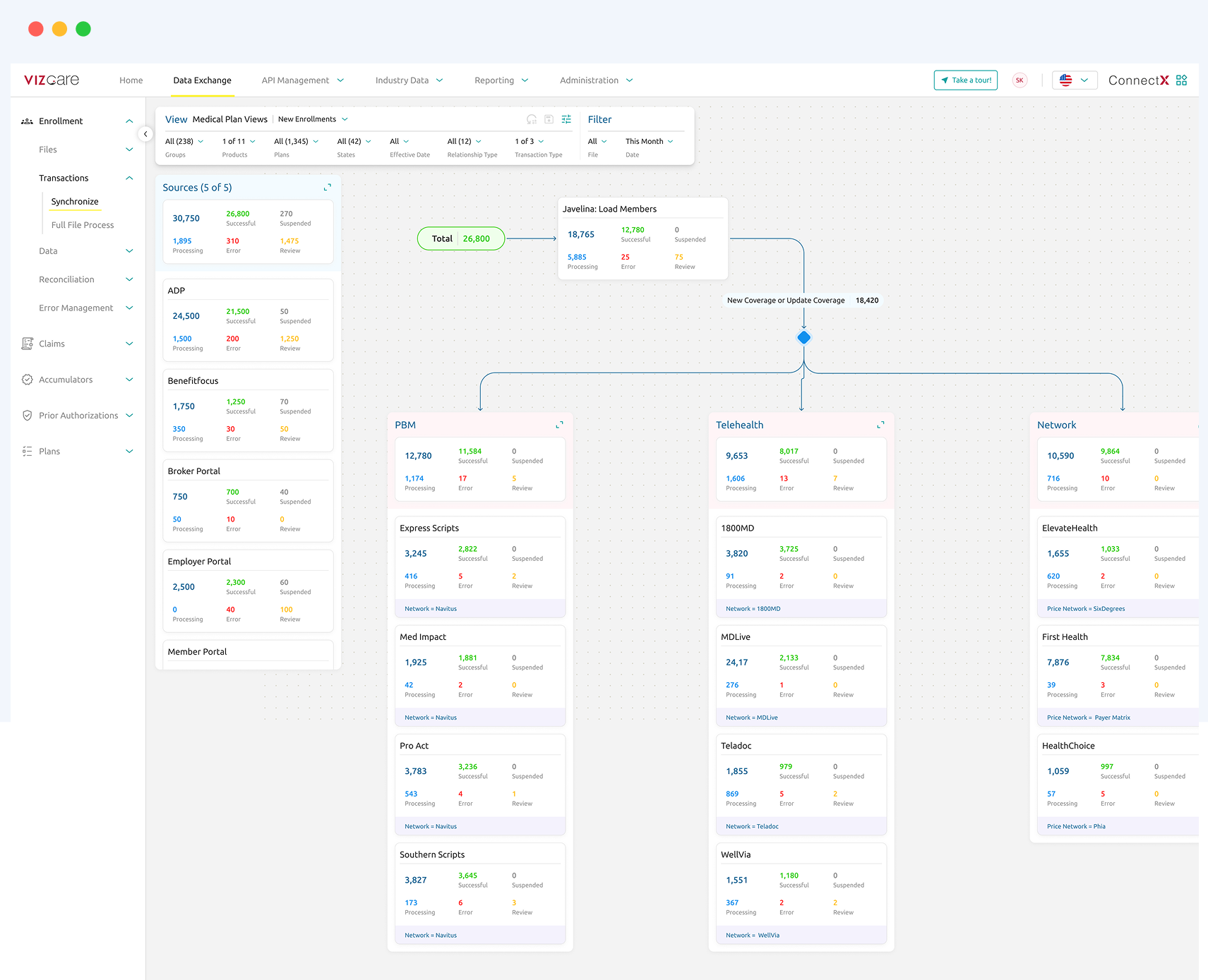 Access interconnected views of key healthcare data types—Members, Providers, Plans, Claims, Prior Authorizations, and Groups. View each entity’s full lifecycle, including historical transactions like coverage changes, claim adjudications, and authorizations, all in one place.